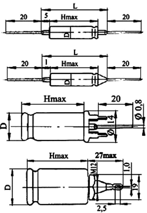 Выпускаются в металлических цилиндрических корпусах четырех вариантов.