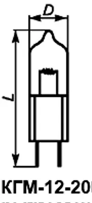КГМ-12-20 лампа накаливания кварцевая галогенная малогабаритная предназначена для использования в качестве высокоинтенсивных источников света в оптических приборах, относится к разделу электровакуумных приборов и ламп различного назначения. По конструкции состоит из вакуумно-герметичной, жесткой оболочки, внутри которой отсутствует кислород.