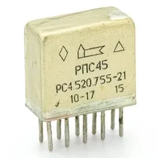 Реле РПС-45 РС4.520.755-21 имеет герметичный корпус с двумя переключающими контактами, служит для замыкания и размыкания различных участков электрических цепей при заданных изменениях электрических или неэлектрических входных величин.  Реле РПС-45 РС4.520.755-21 применяется в различных областях приборостроения, радиоэлектронной промышленности и других сферах.